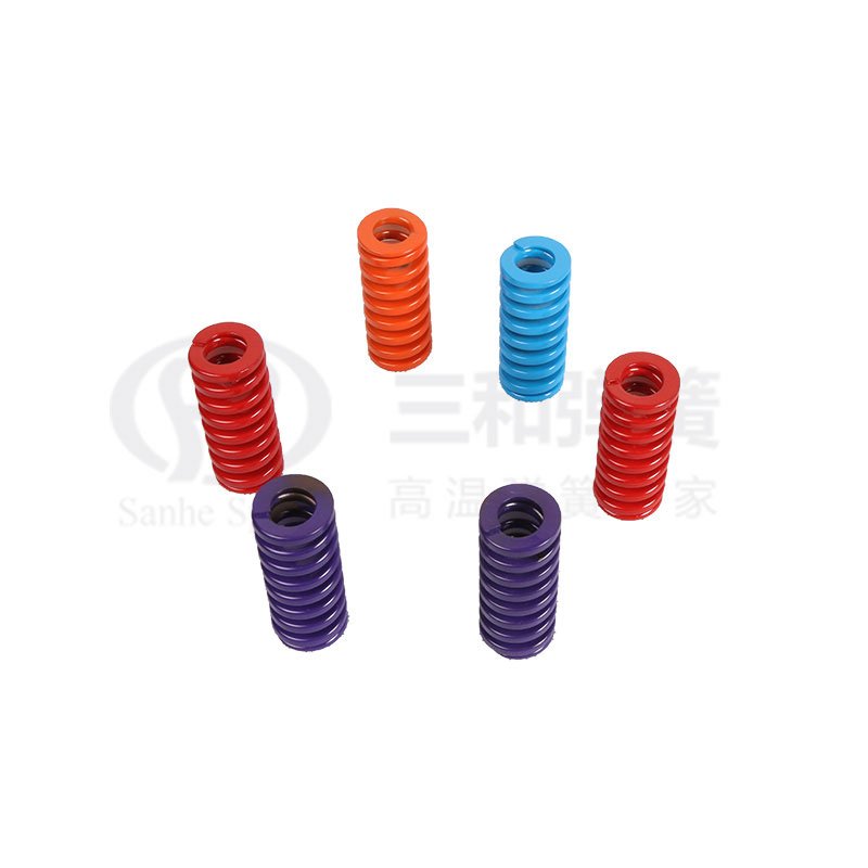 模具彈簧廣泛應用于沖壓模、金屬壓鑄模、塑膠模具以及其他彈性運動精密機械設備、汽車等領域。模具彈簧材質一般選用鉻合金鋼。鉻合金彈簧鋼具有耐高溫、剛性大、壽命長的特點。模具簧采用不同顏色區分彈簧的負荷,黃色為輕小負荷、銀灰為特輕負荷 、藍色為輕負荷、紅色為中負荷、綠色為重負荷、咖啡色特重負荷。